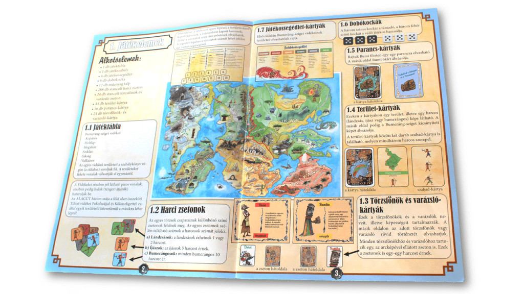 A kiegészítő játék alkotóelemei: • 1 db játékszabály 88 db kártya, ebből: • 66 db Haladó terület-kártya • 6 db Öböl-kártya • 2 db új varázsló- és törzsfőnök-kártya • 6 db új Játékossegédlet-kártya • 7 db új parancs-kártya • 1 db extra kártya