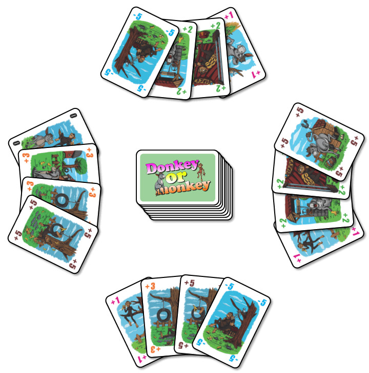 A „Donkey or Monkey” egy vidám party- és készségfejlesztő kártyajáték!