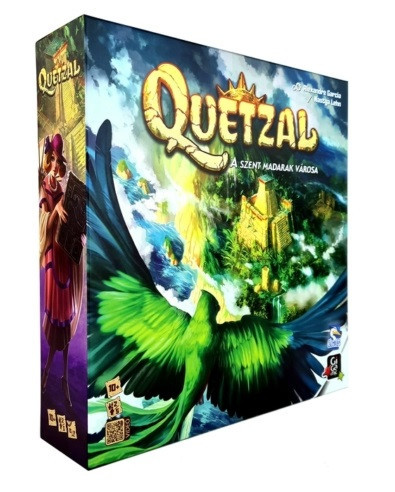 Quetzal – A szent madarak városa látványos családi társasjáték. A játékosok régészeik és kalandoraik segítségével próbálnak kincseket szerezni és elszállítani. A játék érdekessége, hogy az akcióválasztó figuráinkkal dobunk a körünk elején, és attól függően tudjuk felhasználni őket, hogy a talpukon állnak-e, vagy melyik oldalukon fekszenek.