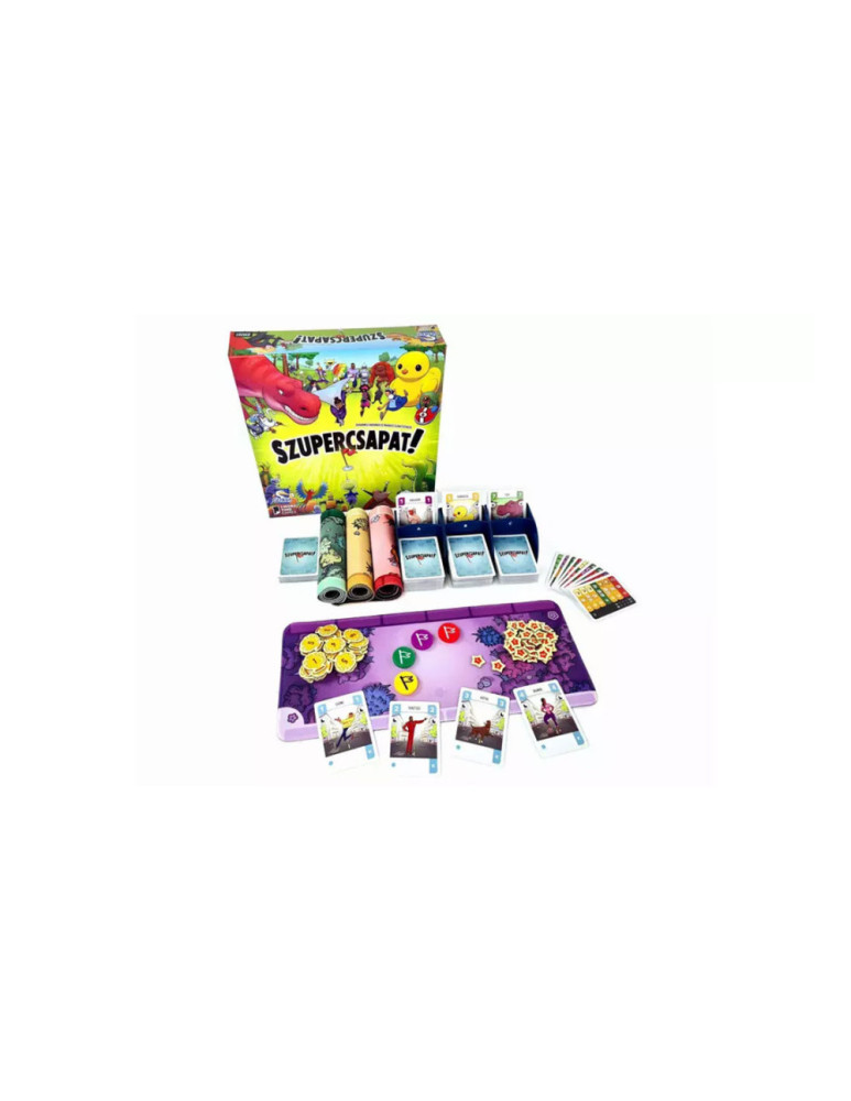 A Szupercsapat! Év játéka díjas, pörgős pakliépítős társasjáték nagyobb társaságoknak is. A játékosok egy bajnokság résztvevői, és egyedileg összeállított csapatukkal vívnak meg párbajokat. Kombinálható a Szupercsapat! – Strandkupa társasjátékkal.