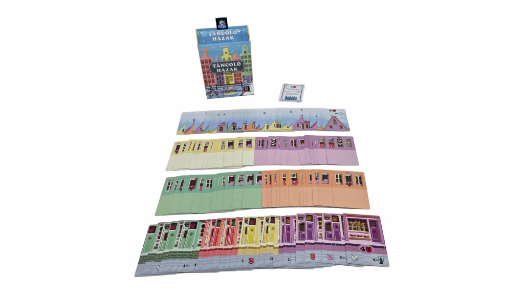A végeredmény mindig egy vidám, színes és kissé bohókás városrész – hogy mindez hány pontot ér, az a játék közben hozott döntéseiteken múlik. A Táncoló házak gyors tempójú, percek alatt megtanulható kártyajáték, amely tökéletes családi játékestekhez vagy egy könnyed, mégis taktikus partijátékhoz. A kis doboznak köszönhetően pedig bárhová könnyedén magatokkal vihetitek.