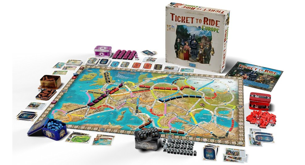 A Ticket to Ride: Europe - 15. évforduló a Ticket to Ride: Europe alapjáték és az Europa 1912 bővítés anyagát tartalmazza, összesen 108 céljegykártyához.