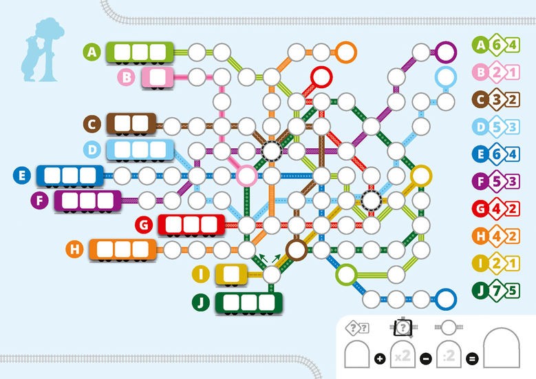 Berlin, Madrid, Amszterdam vagy Párizs – a metró oda-vissza megy a városon keresztül. Válaszd ki a megfelelő vonalat, és tervezd meg a legjobb útvonalat. Ügyesen rakd le kereszteidet, legyél gyorsabb játékostársaidnál, és jelöld meg elsőként a legtöbb győzelmi pontot érő végállomásokat. De vigyázz! Ha a vonatod idő előtt megáll, gyorsan lemaradsz. Négy különböző terv változatosságot és szórakozást hoz a játékba.